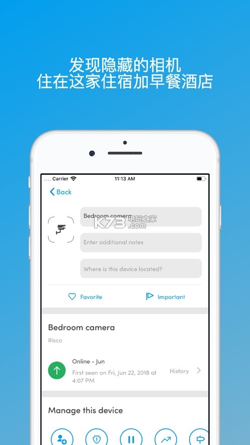 1.它可以智能检测自身周围是否有隐藏的摄像机,可以保护您的人身安全。