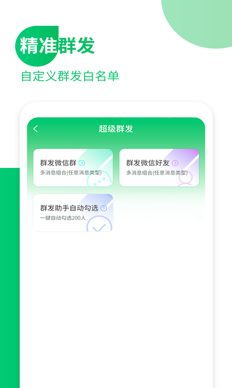 1.您可以设置白名单,并一键同时发送多个消息给多个朋友。