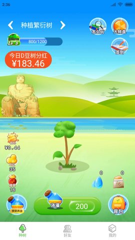 每一位用户都可以通过种树的方式获得奖励,并且具有简洁的界面以及强大的功能,用户根据系统的提示就可以完成一系列的操作,并且不同的小树会为用户带来不同的收益,更可以一键将自己赚取的金额提现至账户中。