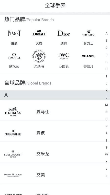 1,进入应用程序后,用户可以快速在线查看相关的手表品牌信息。