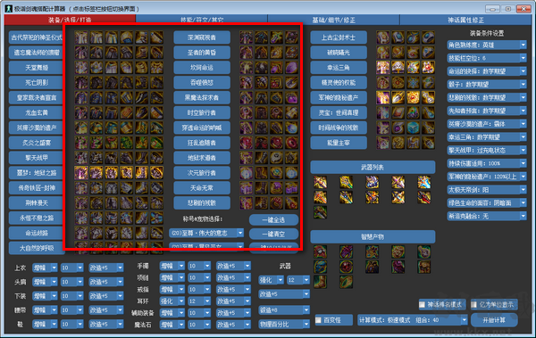 2.选择职业后,只需开始选择当前职业的武器和装备,然后单击计算即可。