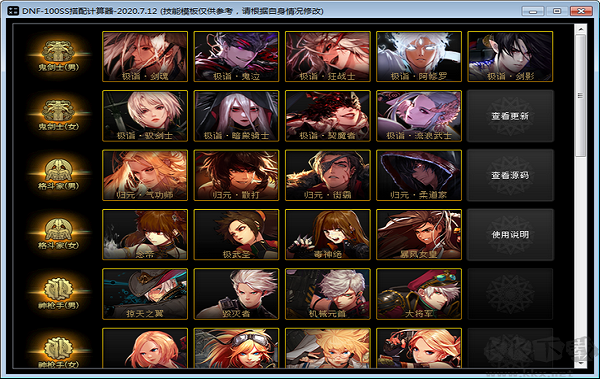 打开软件后,默认会显示当前DNF中的所有职业,在其中选择自己职业。