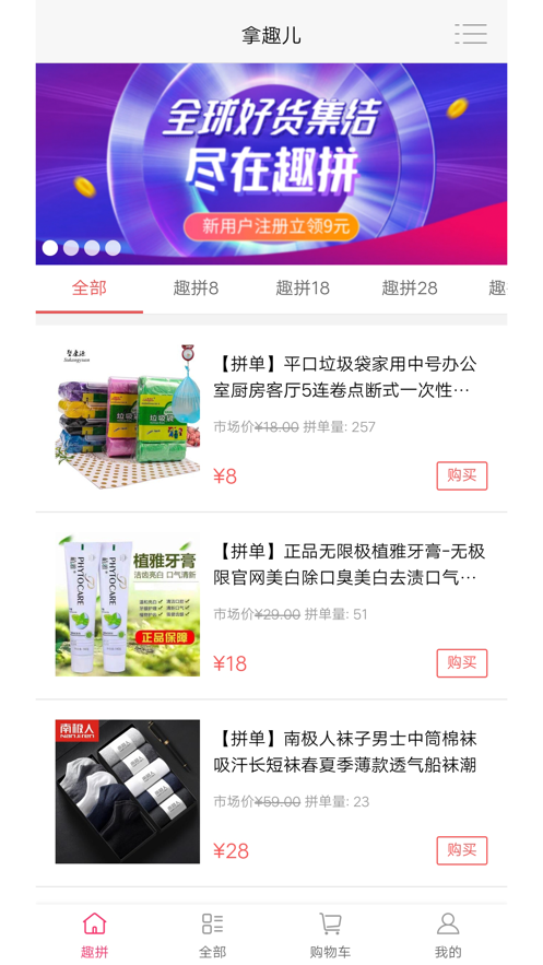 拿趣儿是一款非常不错的购物软件,这里提供了丰富的商品类型,大家可以根据自己的需求来进行购买,所有的商品都是有质量保障的,大家可以放心的进行购物,还可以货比三家,邀请好友们一起参与购物也能够享受到最大的福利和优惠,更多优质好物等着你,快来尽情购物吧。
