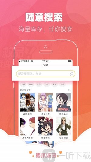猫爪漫画是具有丰富资源免费漫画阅读器,软件中拥有超多个漫画资源搜索方式,让用户可以轻松追更,让漫画的在线阅读非常顺利,同时软件支持离线缓存和高清以及全彩阅读质量,让漫画阅读没有网络的阻碍,更加畅通无阻。