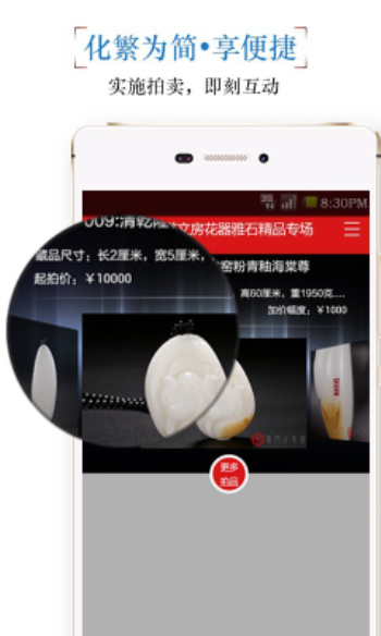 1.活跃的拍卖现场:真实的现场拍卖经验,并提供便捷的竞标方法。