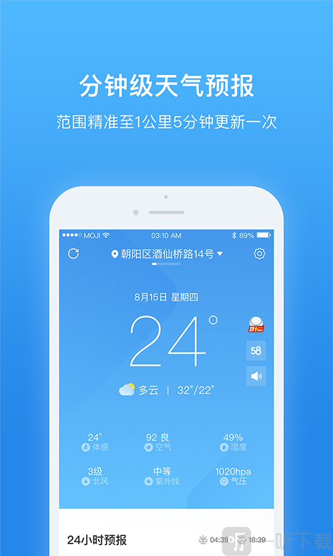 24小时内轻松查看天气变化,防止早晚温差过大;