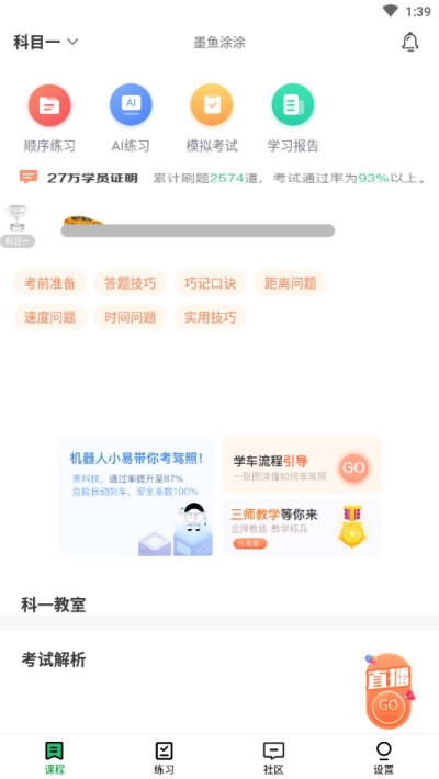 墨鱼涂涂是超级好用的驾考学习软件,在这里你有着超多的学习资源,可以帮助你更快速的掌握教考知识,使用起来也是非常的简单方便,还有丰富的习题可以让你进行练习,通过练习来查漏补缺。