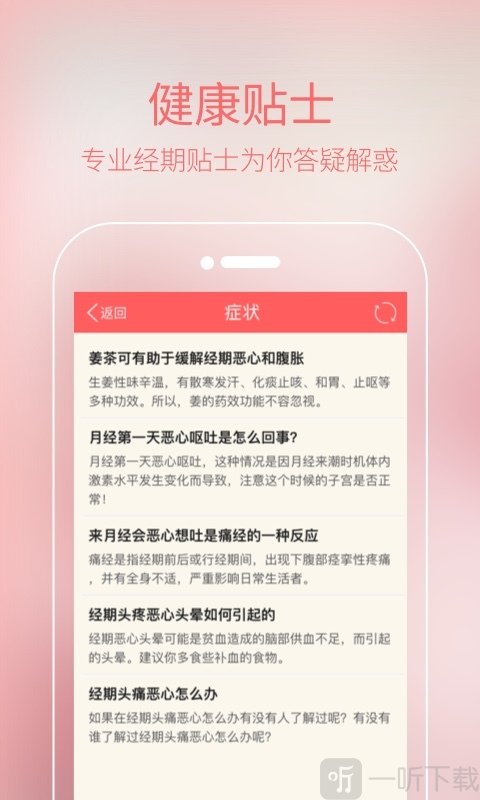 1.准确预测:该应用程序具有内置的科学专业月经算法,可自动计算您姨妈的日期,月经期和排卵时间;