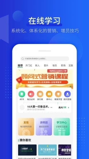 软件内提供了很多优质的课程资源,用户可以选择适合自己的课程进行学习,平台上所有的营销课程全部都是免费的,能够帮助你快速的提升销售业绩,学会更多专业的营销知识和技巧。
