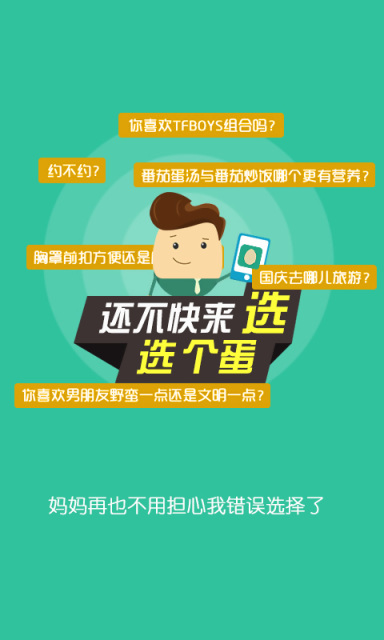 像小编这种有选择困难症的人,生活中是真的很难啊,自己做一个选择真的太难了,但是我可以给别人做选择,所以和小编一样的人可以也来到选个蛋,你帮别人做选择,别人帮你做选择。