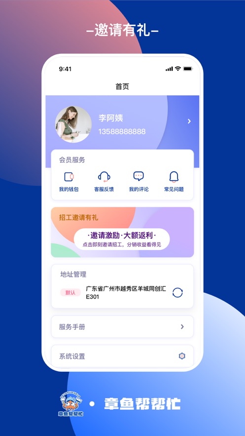 章鱼帮手是一款特别方便的生活服务类软件,很多小伙伴们生活工作特别忙,随时都需要家政服务人员来帮忙照顾家庭,这款软件给需要家政服务的小伙伴们和提供家政服务的单位打造了一个沟通交流的平台,让双方的需求都在第一时间得到满足。