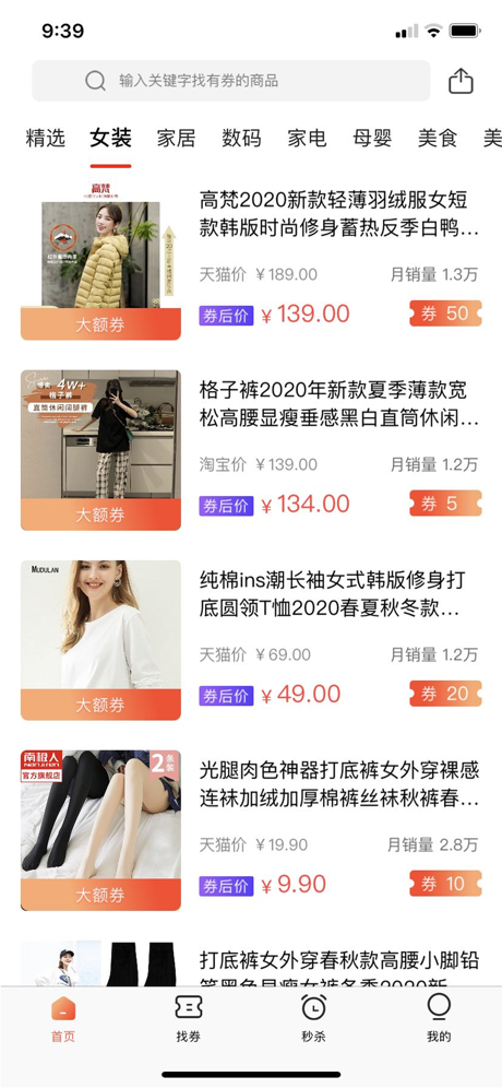 7.优惠券商场:云集海量天猫淘宝带优惠券商品。