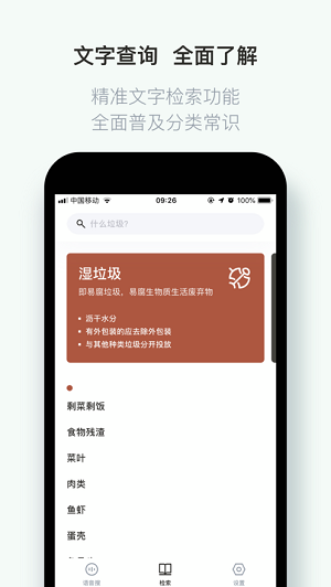 1.输入垃圾的名称或关键字以快速了解垃圾的分类。