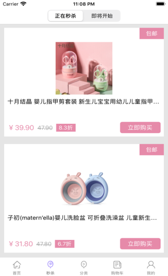 2.各种母婴产品的类别已经明确分类,用户可以一键在手机上购买和下订单。