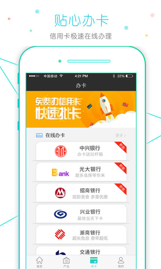 2.贴心申请信用卡,并快速在线申请信用卡;
