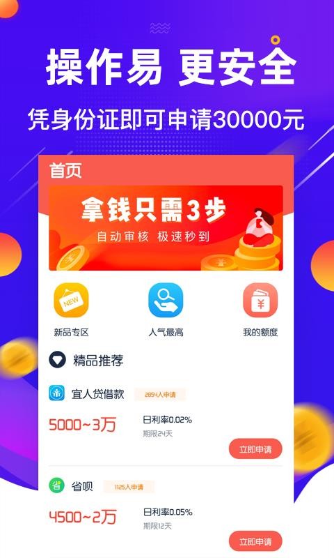 2.快速贷款:在线贷款,30分钟审查,最快1小时。
