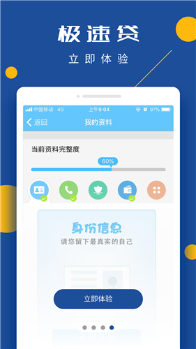 期待极速贷是一款非常好用的在线贷款应用程序,可让用户使用身份证进行借款,在这个软件中无需抵押,无需担保,无需面签,门槛低,可以凭身份证借款,在线操作方便快捷,是个超级棒的软件。