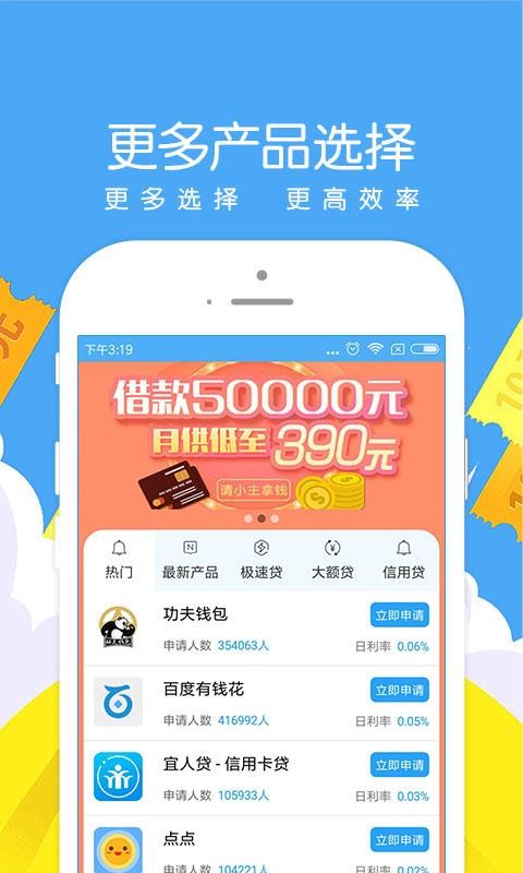 3.自动向您推荐热门产品,您可以在手机上申请贷款。
