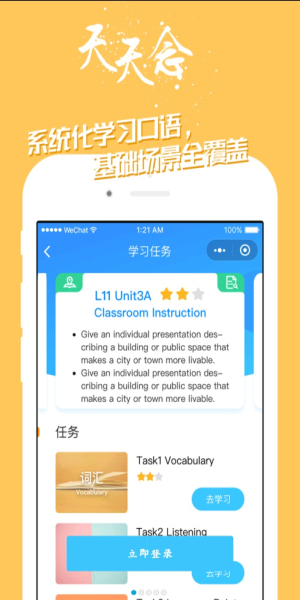 2.在学习任务里,用户可以选择任务学习,里面的内容难度不一样。