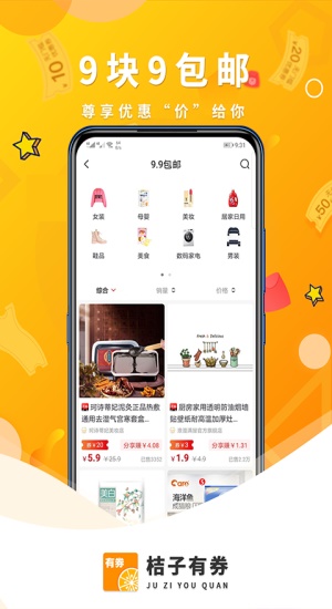桔子有券是一款帮助用户可以省下很多钱的购物商城,商城内有大量的商品和许多超值的优惠券,轻松一键快速领取,在手机上购物而且价格非常的便宜非常的方便,商城内大量的优惠每天都会更新并且可以免费领取,这里的商品都是最新最流行的,价格也十分的优惠,质量也有保障。