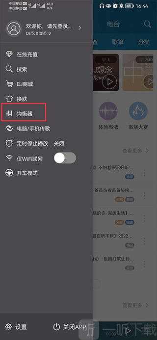 1、下载dj音乐盒官方正版,安装软件,打开使用
