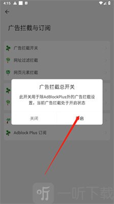 4、最后点击【开启】即可完成广告拦截的设置了。