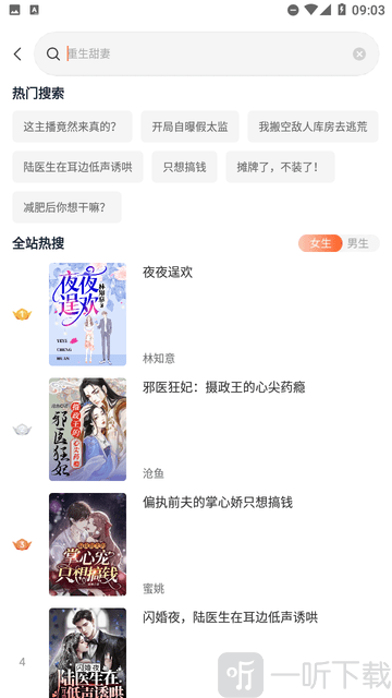 3. 还可以按照自己的喜好选择男频或者女频找书。