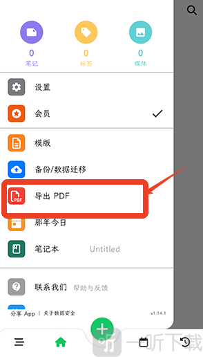 4)点击右上角的“菜单”可以把笔记导出成PDF格式。