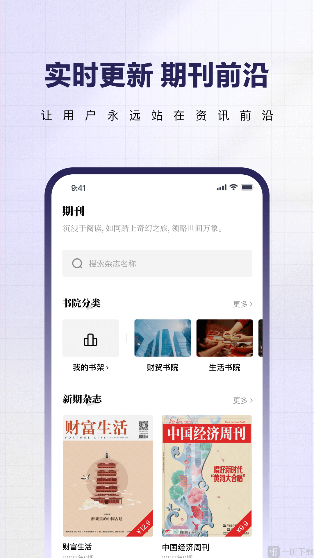 2. 登录后,在APP首页可以看到丰富的书院分类、新期杂志等