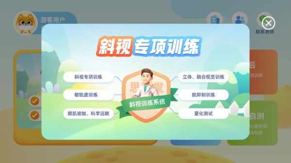2)斜视手术后人群,通过本软件可以建立双眼三级视功能,并通过训练避免二次手术风险。