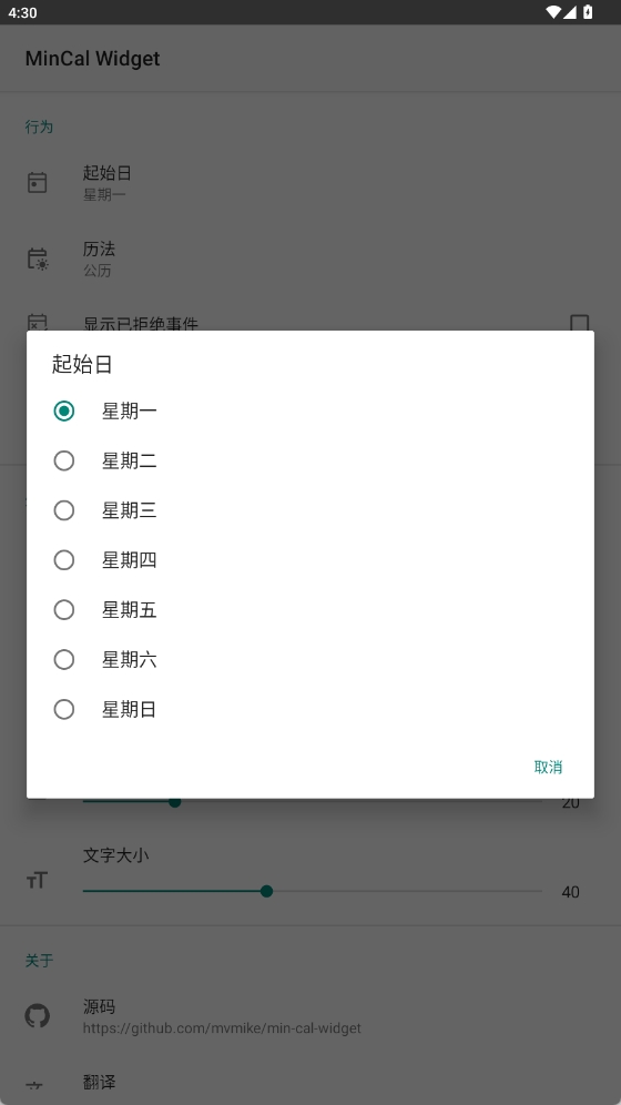 2. 根据个人偏好设置日历的起始日,挑选历法,打造专属的日历组件。