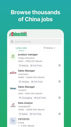 echinacities也叫作外籍招聘网,是专门面向外籍人才的中国企业招聘app,海量优质的工作岗位全都能在这找到,包括媒体、教育、销售、科技等,所有职位都已经过严格认证,力求为求职者们带来高质量的就业机会。