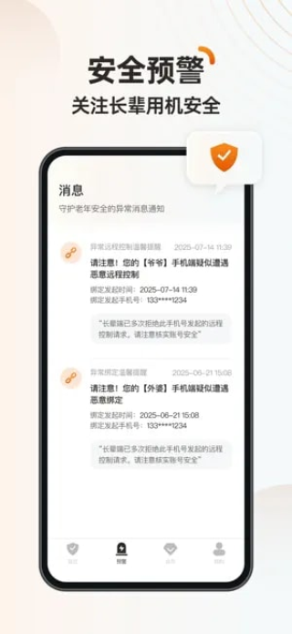 2.监护人可以查看用户在使用手机时被远程绑定与控制的情况,避免被有心人诓骗。
