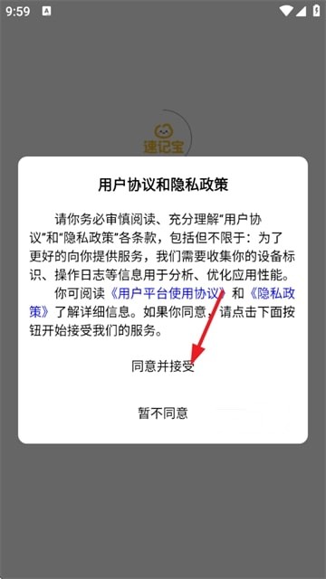 1.首先打开 单词速记宝app,阅读并同意“用户协议和隐私政策”
