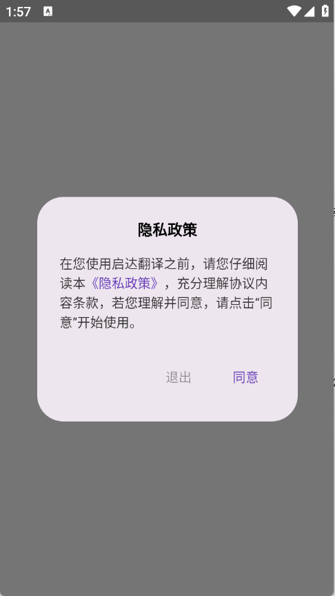 1.打开启达翻译器App,查看并同意隐私政策与用户协议
