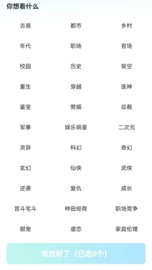 2. 接着选择你感兴趣的短剧类型,如果不想选也没关系,直接跳过。