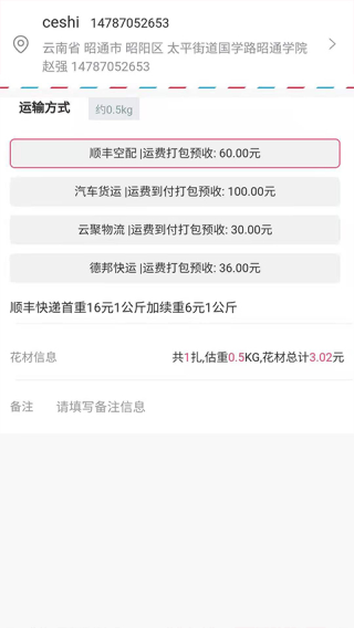 1.下单界面采用简洁明了的设计思路,方便输入地址等资讯来下单购买鲜花商品。