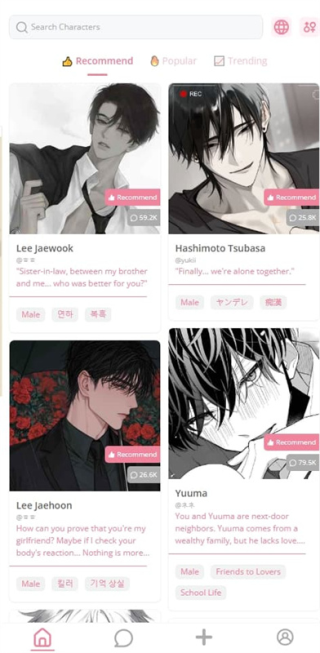 软件可以让用户在空闲时间与智能AI角色进行一对一的聊天,在剧本的帮助下创造处一个独一无二的故事情节,非常推荐下载体验!