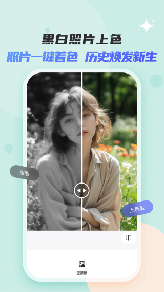 2.提供AI一键修图功能,点选工具后只需等待就可以获得由智能AI所提证的效果。