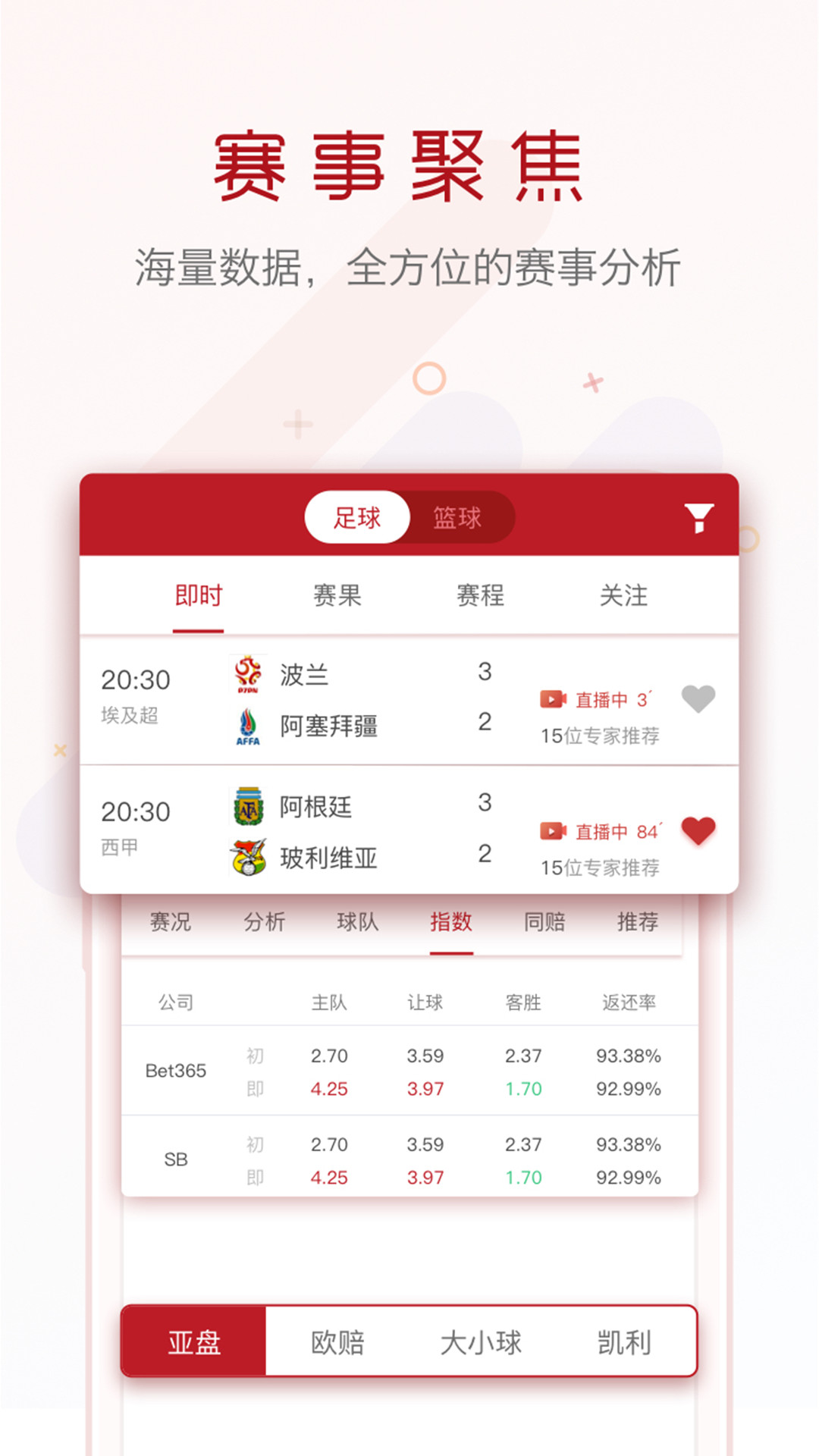 -支持国内外主要足球与篮球赛事,包括中超、英超、欧冠、NBA等。