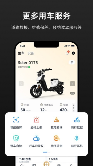 1.采用精简且美观的界面,方便供用户连接和查看重机的骑行数据。