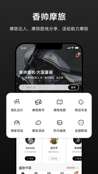 1.搭载了社交圈功能,可以与其他驾驶同品牌机车的用户一同聊天。
