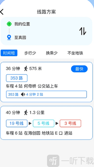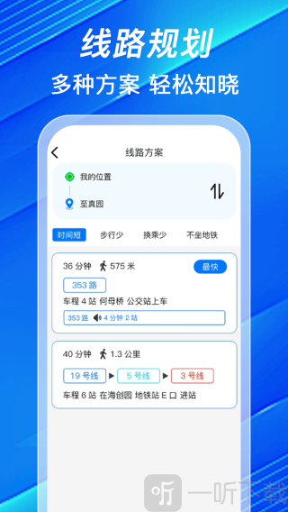 4.通过时间短、步行少、换乘少等多个功能中选择最优的路线。