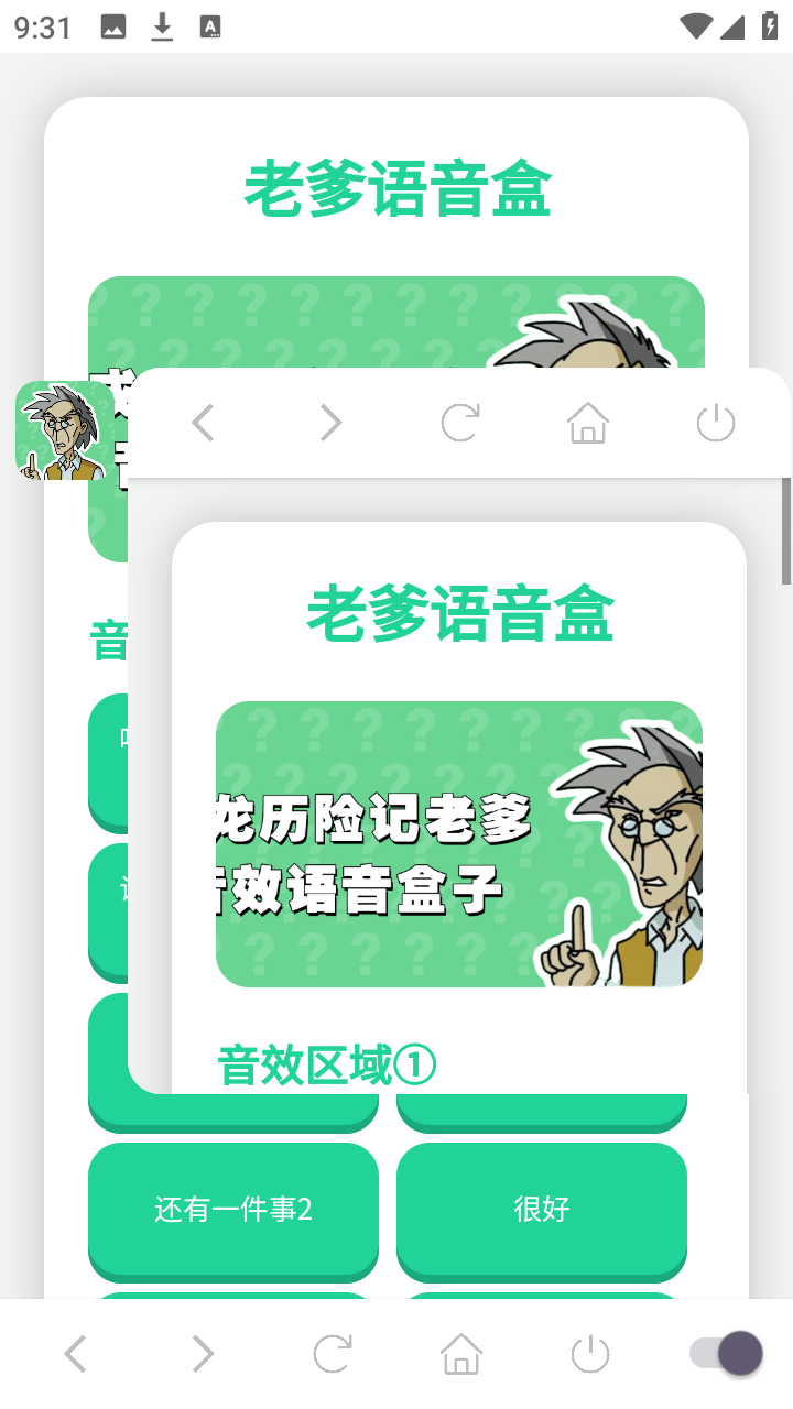 老爹语音盒是一个由粉丝根据《成龙历险记》里老爹的台词所打造的语音播放安卓手机软件,让用户可以随时播放经典语音来获得快乐。软件还支持打开悬浮窗来播放语音,随时一点即可播放熟悉的老爹语录,社交互动时也能轻松唤醒童年记忆。