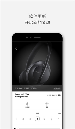 4.Bose Connect会在后台下载最新的产品软件,只有在你准备好了的时候才会安装。所以当你只想听音乐的时候,你不会被强迫去更新;