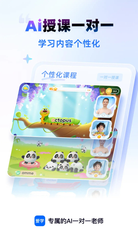 爱学专为低年龄段的用户开发,如果你家中有想要学习英文的孩子,就可以在这款软件里了解许多优秀的启蒙教育知识,软件会根据孩子的接受程度来制定合适的学习计划,让孩子可以爱上英语课程,所有的知识点都是一对一教学的,能加深孩子对知识的理解。