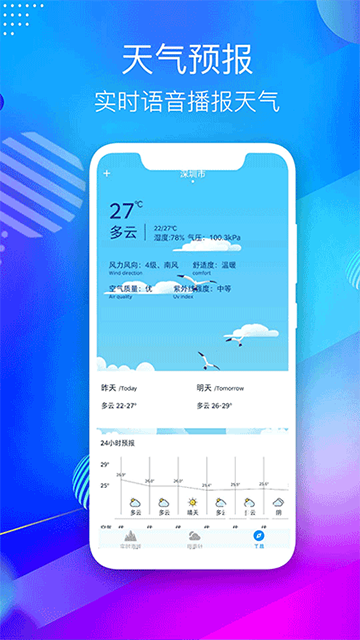 1.每天打开软件都可以查看当前城市的天气信息,为自己的出行做好准备。
