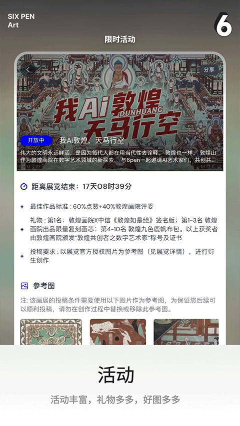 2、挑选喜欢的一幅展品进行浏览,可以看到礼物数和投稿要求,