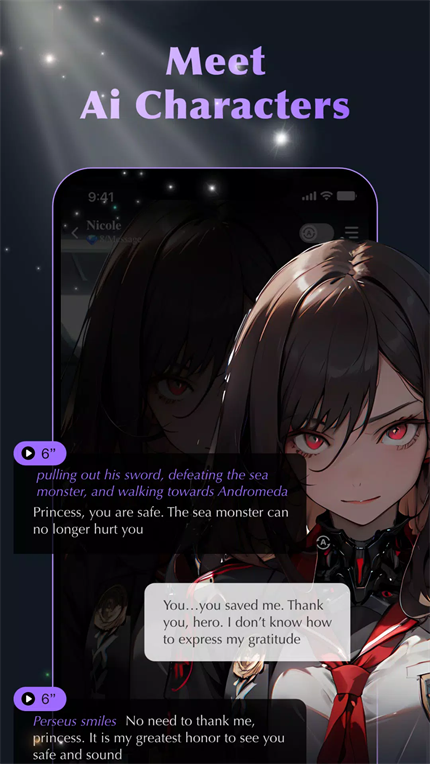 2.给用户带来自定义的服务,让用户可以对角色扮演的场景进行设置。 Ai角色还会根据场景的变化,跟你进行连贯的符合场景的对话。
