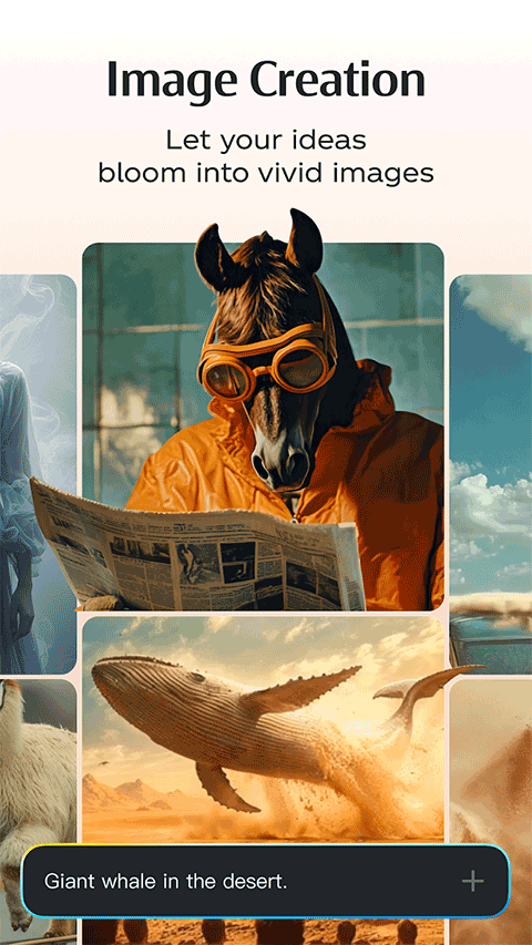 这款软件当中的很多功能都是免费的,对于一些比较基础的用户来说,这些功能已经足够了,所以用户就可以在软件当中将自己脑海中的想法告诉AI,他会将这些想法生成实际的内容,也可以对对应的视频或图片等进行深度加工,是非常智能的一款AI软件。